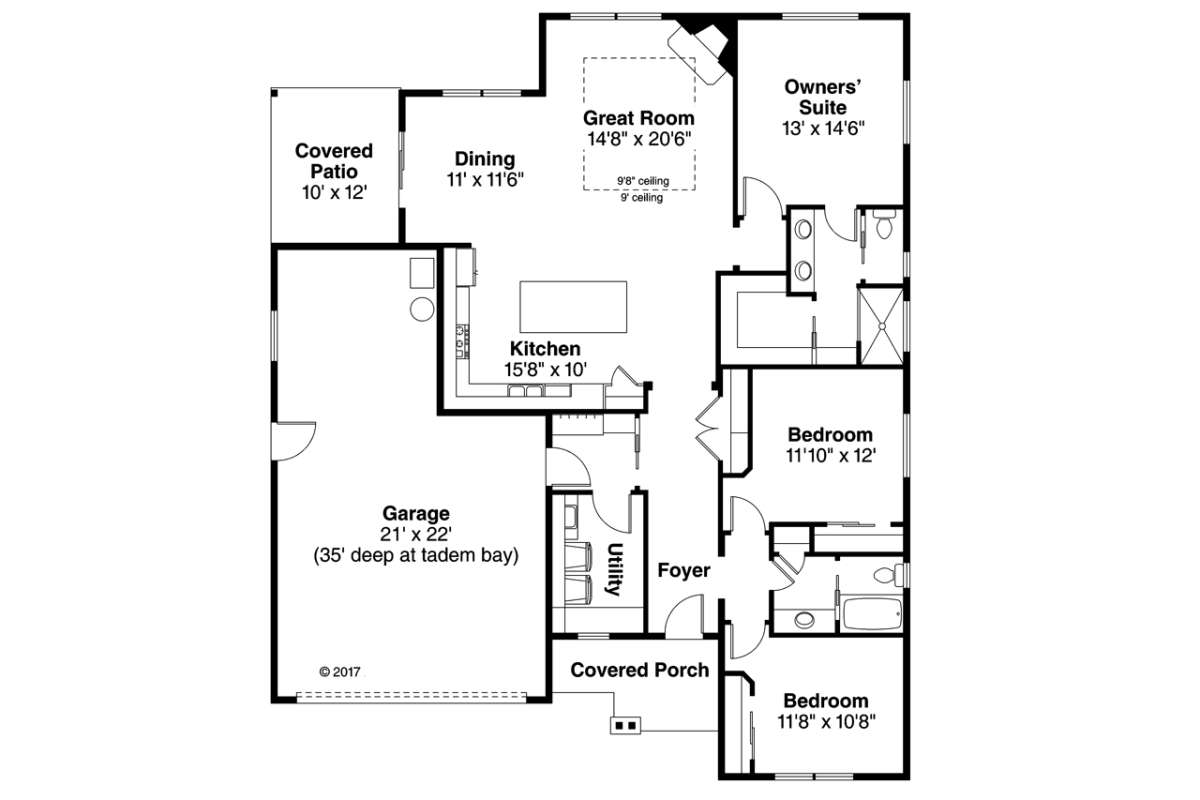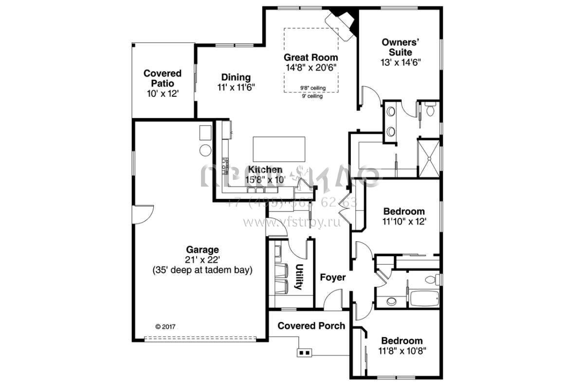 Проект одноэтажного дома с гаражом на две машины в стиле Ранчо S5-169 (035-00775)