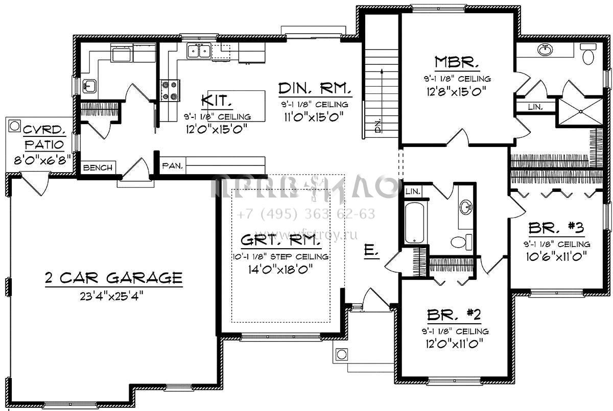 Проект одноэтажного дома с гаражом на две машины в стиле Ранчо S5-169 (1020-00141)