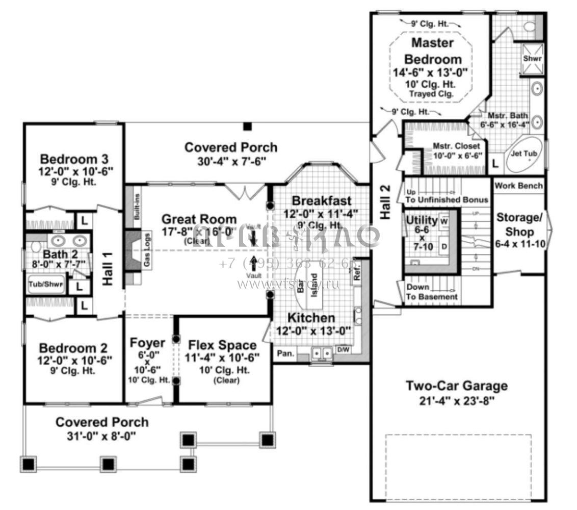 Проект одноэтажного дома с гаражом на две машины в американском стиле S5-169 (348-00176)