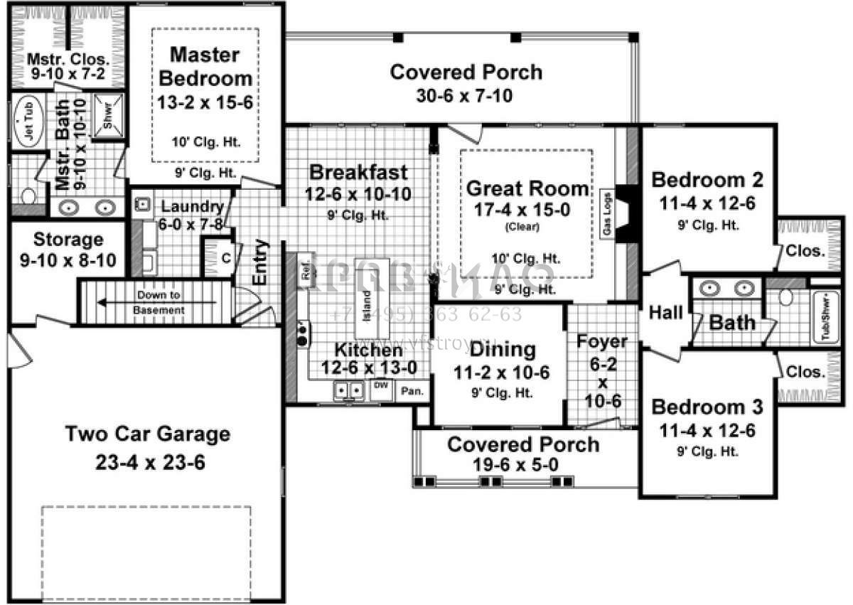 Проект одноэтажного дома с гаражом на две машины в американском стиле S5-169 (348-00215)