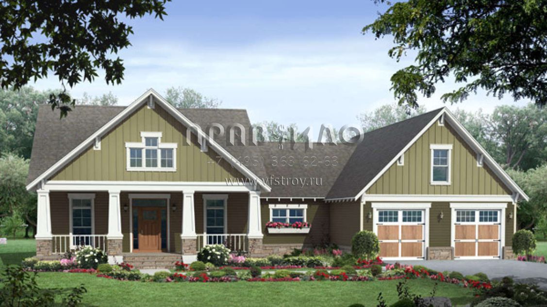 Проект одноэтажного дома с гаражом на две машины в американском стиле S5-169 (348-00234)