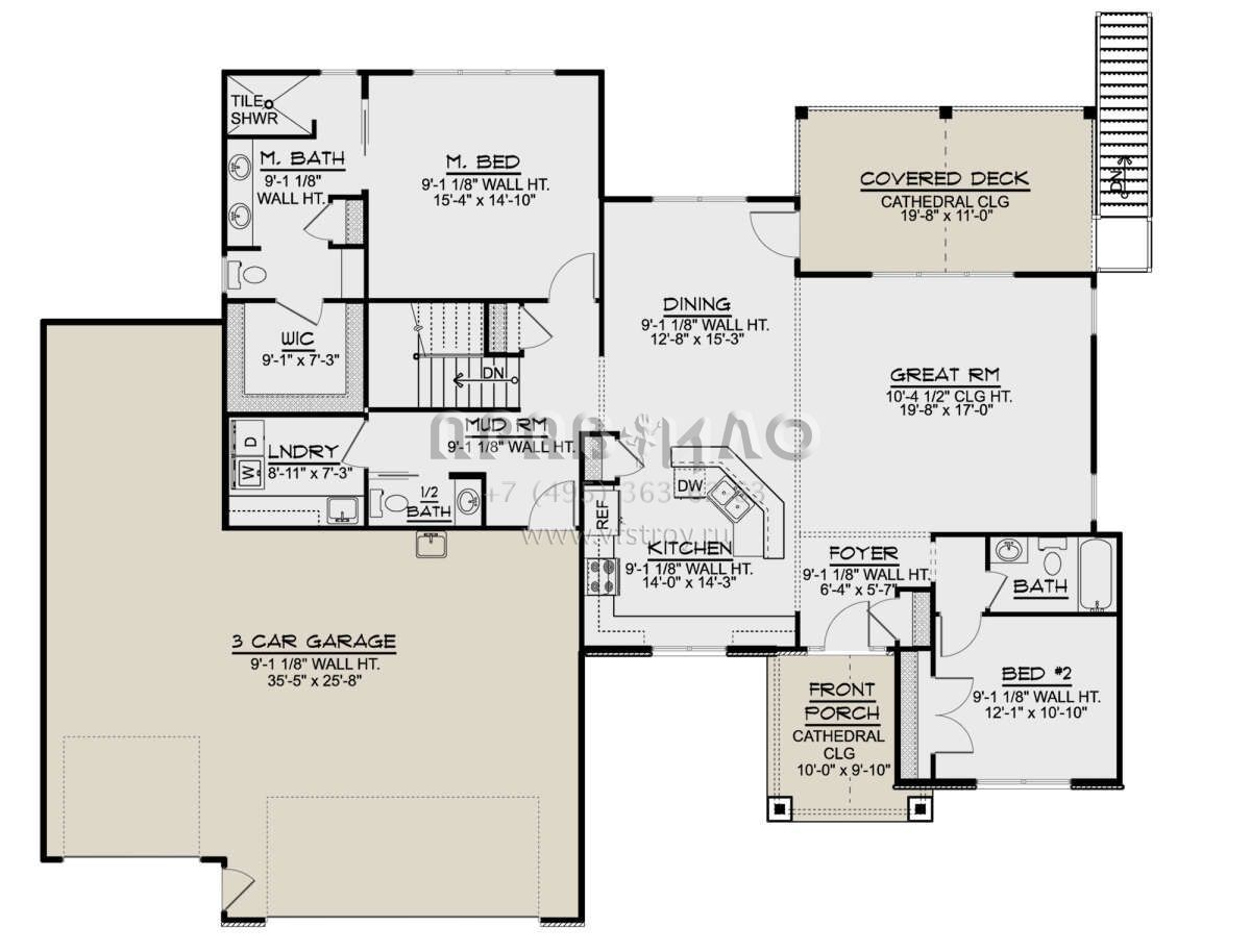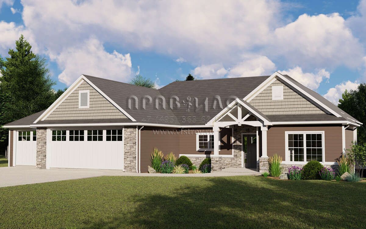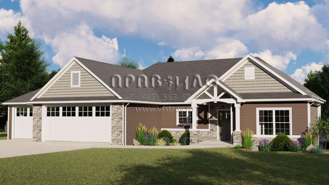 Проект одноэтажного дома с гаражом на три и более машин в американском стиле S5-169 (5032-00055)