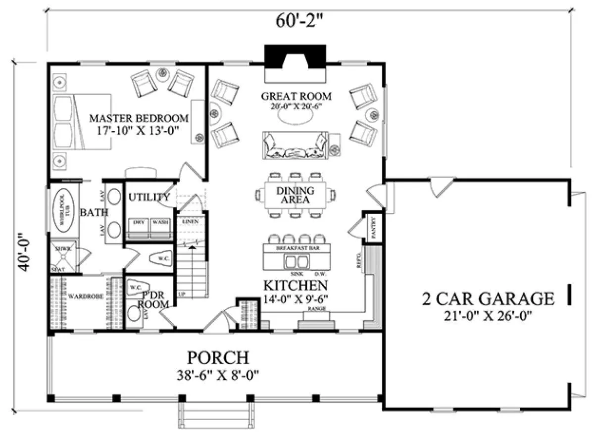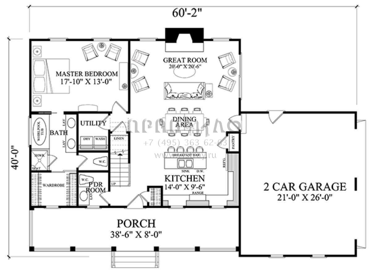 Проект двухэтажного дома с гаражом на две машины в стиле Ранчо S5-169 (7922-00230)