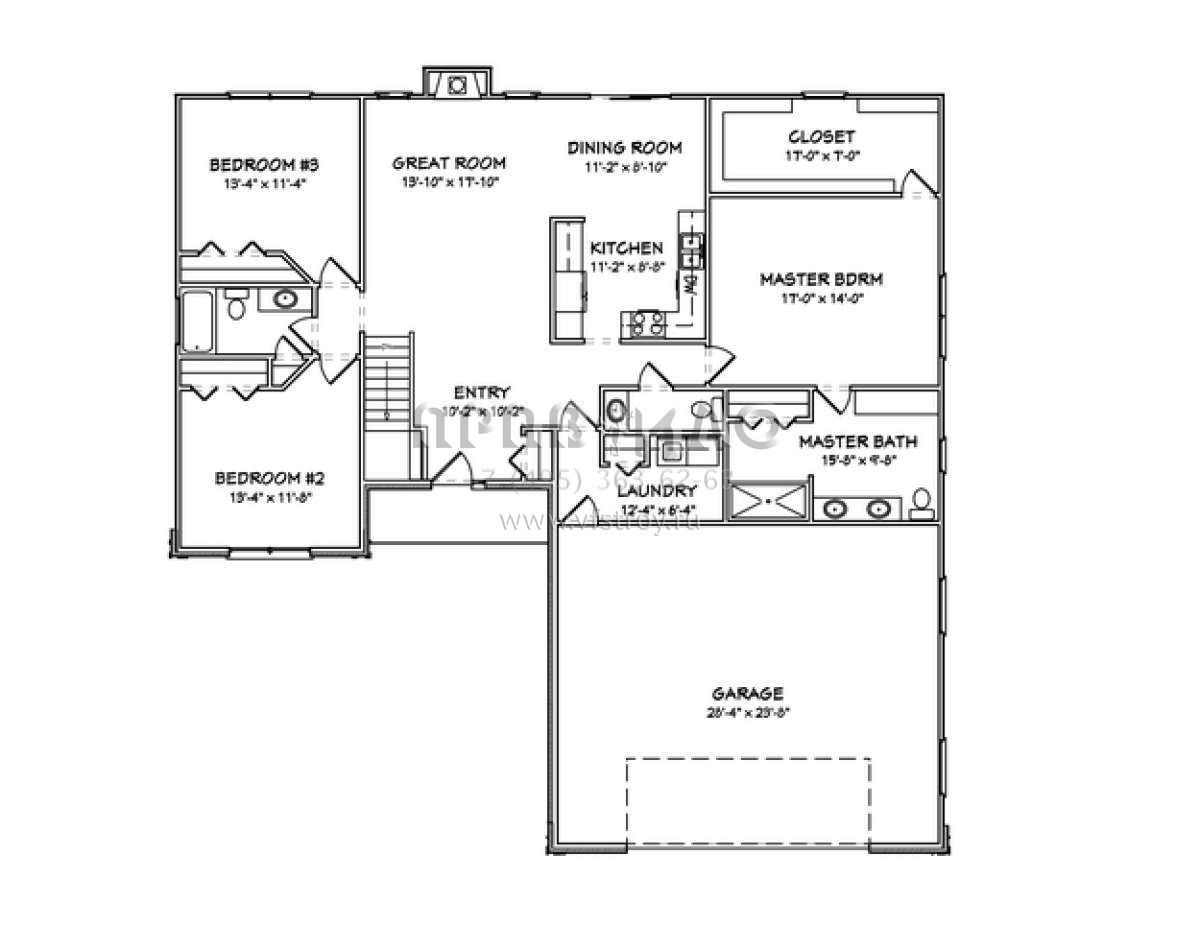 Проект одноэтажного дома с гаражом на две машины в стиле Ранчо S5-169 (849-00032)