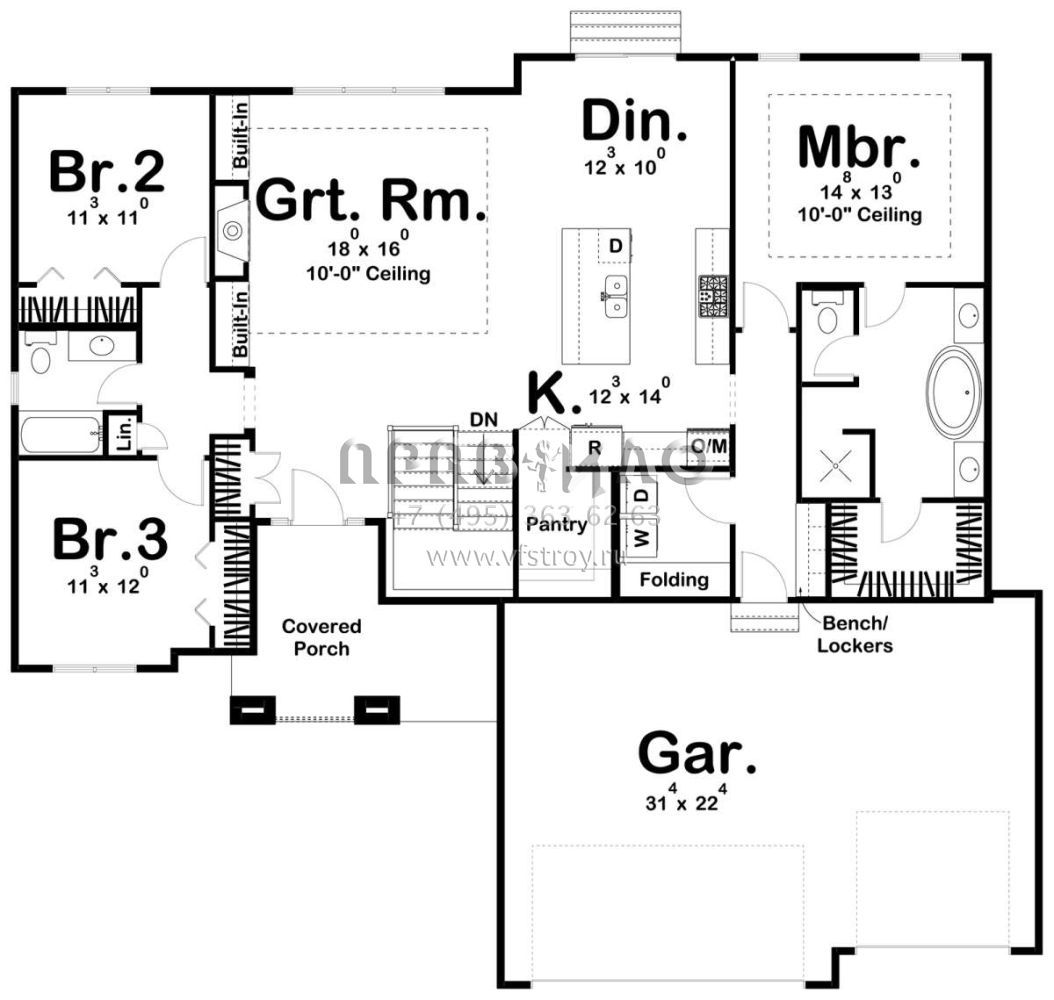 Проект одноэтажного дома с гаражом на три и более машин в современном стиле S5-169 (963-00326)