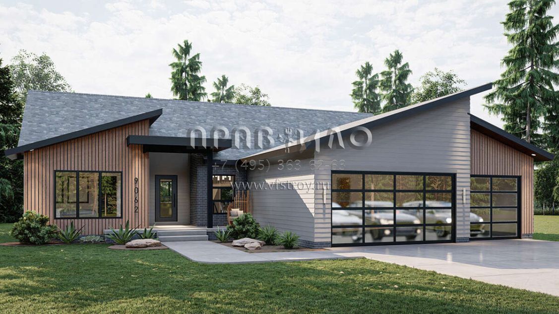 Проект одноэтажного дома с гаражом на три и более машин в современном стиле S5-169 (963-00608)
