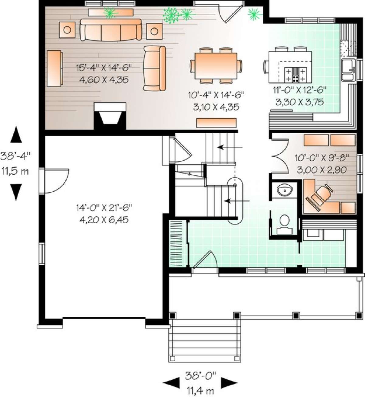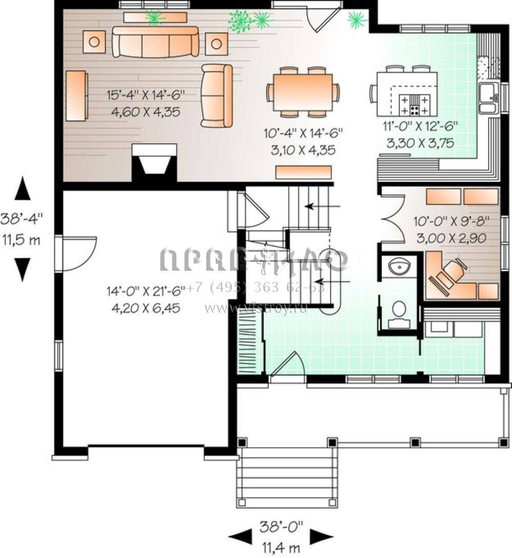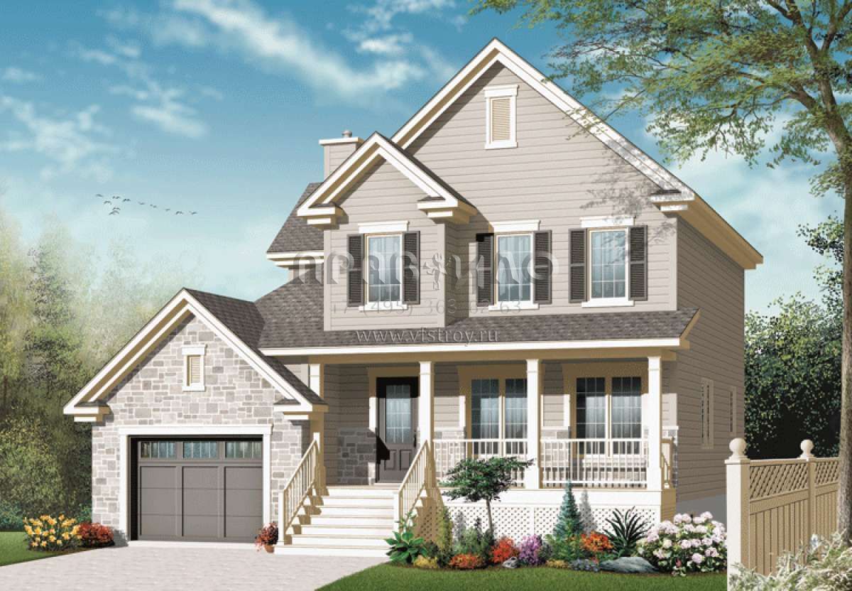 Проект двухэтажного дома с гаражом на одну машину в английском стиле S5-170 (034-00987)