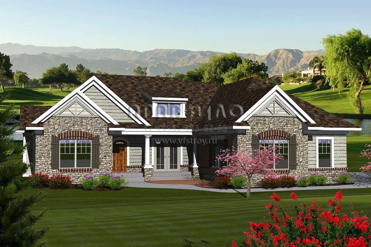 Большая площадь участка позволяет выбрать одноэтажный проект дома, особенно если в семье есть пожилые люди, инвалиды или маленькие дети.