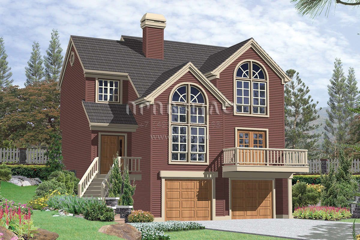 Проект двухэтажного дома с гаражом на две машины в цокольном этаже S5-170 (2559-00223)