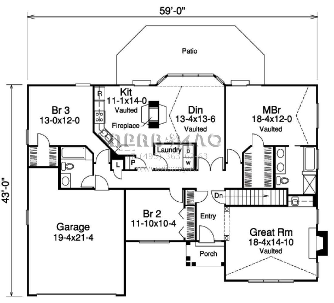 Проект одноэтажного дома с гаражом на две машины в стиле Ранчо S5-170 (5633-00105)