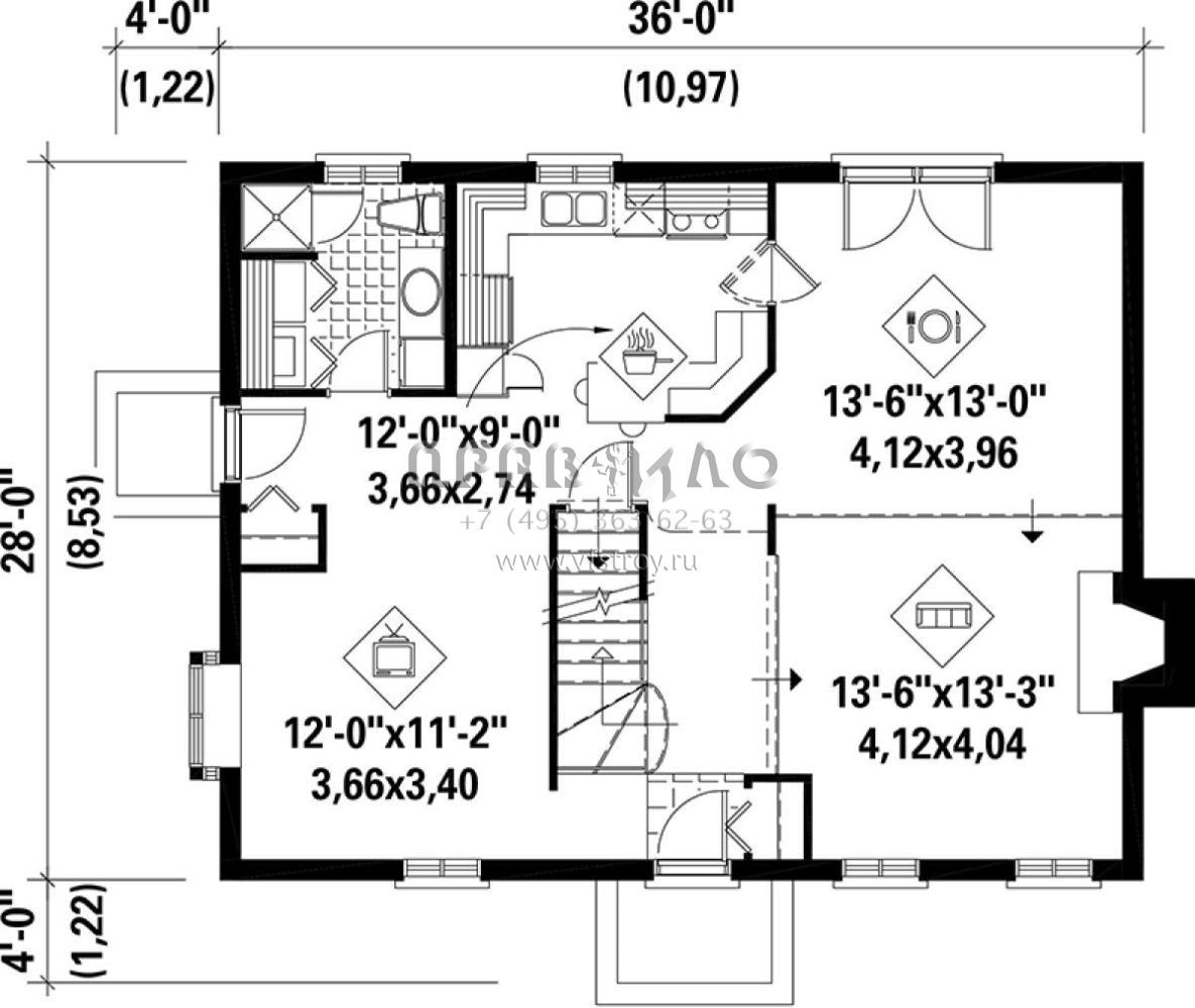 S5-170 (6146-00050) Это иностранный проект, для которого требуется адаптация под нормы, действующие в Российской Федерации. Вы видите проект дома в классическом стиле. В этом доме сочетаются черты сельской постройки и аскетичность лофта. Внутри жильцы смогут проводить время с максимальным комфортом. Обратим внимание, что сейчас на планировках все размеры представлены в футах. Для перевода в метры вам необходимо значение в футах умножить на 0,3048.