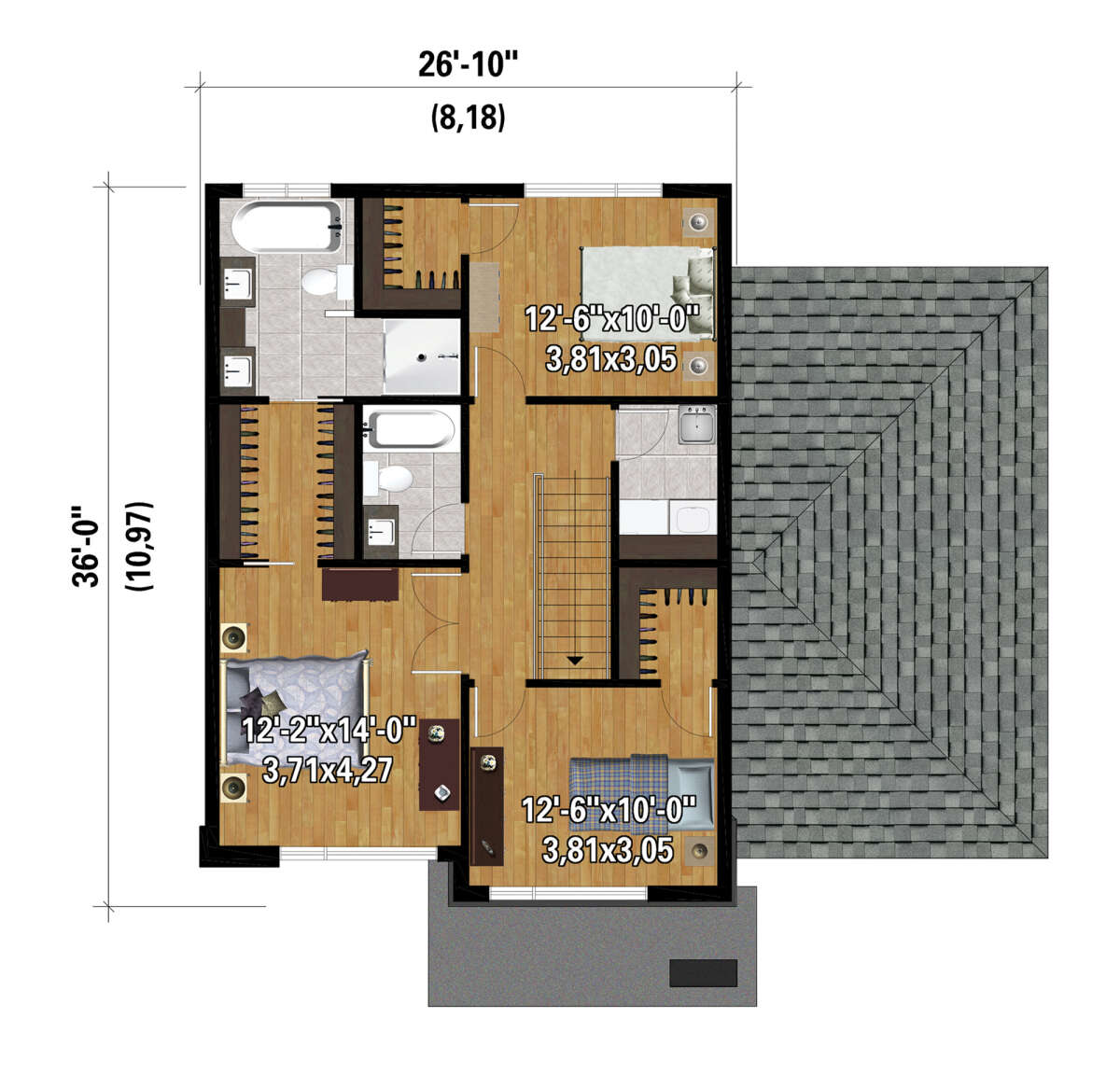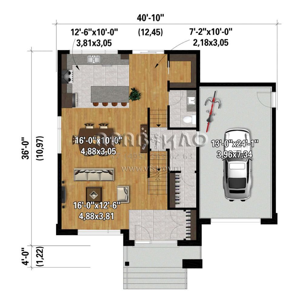 S5-170 (6146-00531) Это иностранный проект, для которого требуется адаптация под нормы, действующие в Российской Федерации. Вы видите проект дома в современном стиле. В этом доме сочетаются черты сельской постройки и аскетичность лофта. Внутри жильцы смогут проводить время с максимальным комфортом. Обратим внимание, что сейчас на планировках все размеры представлены в футах. Для перевода в метры вам необходимо значение в футах умножить на 0,3048.