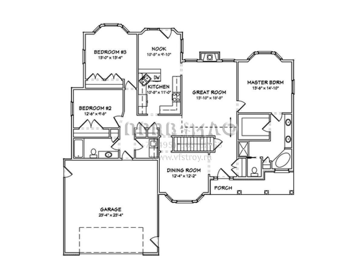 Проект одноэтажного дома с гаражом на две машины в стиле Ранчо S5-170 (849-00076)