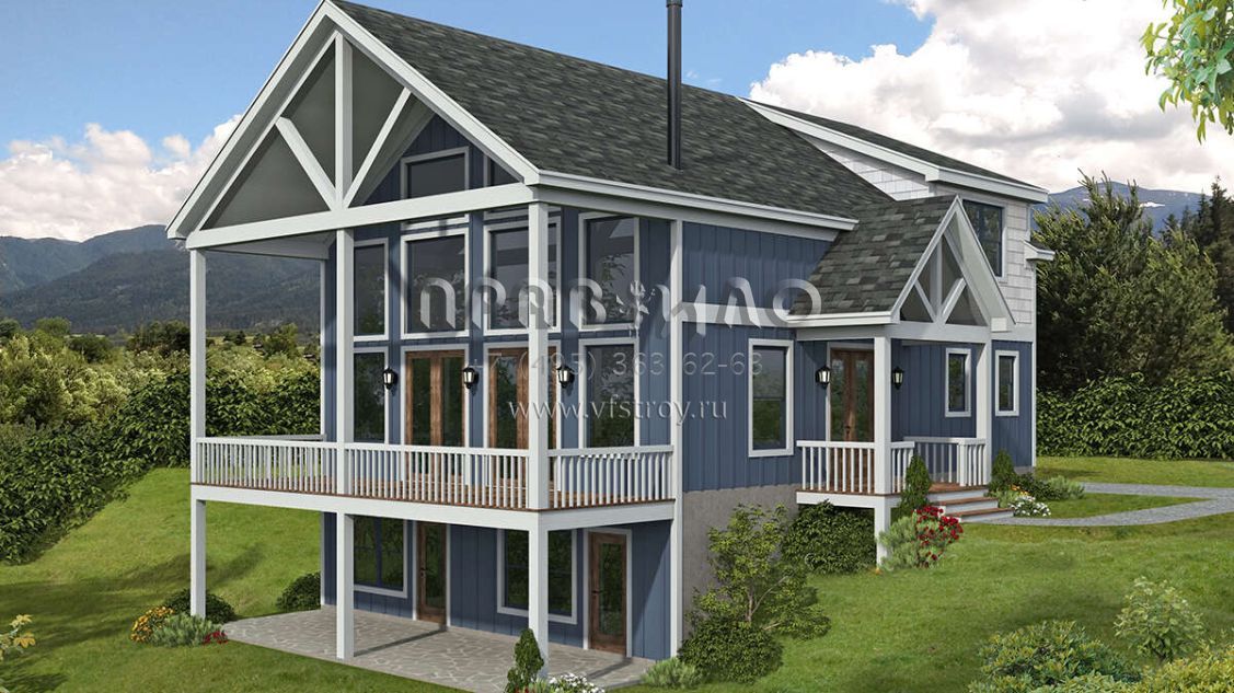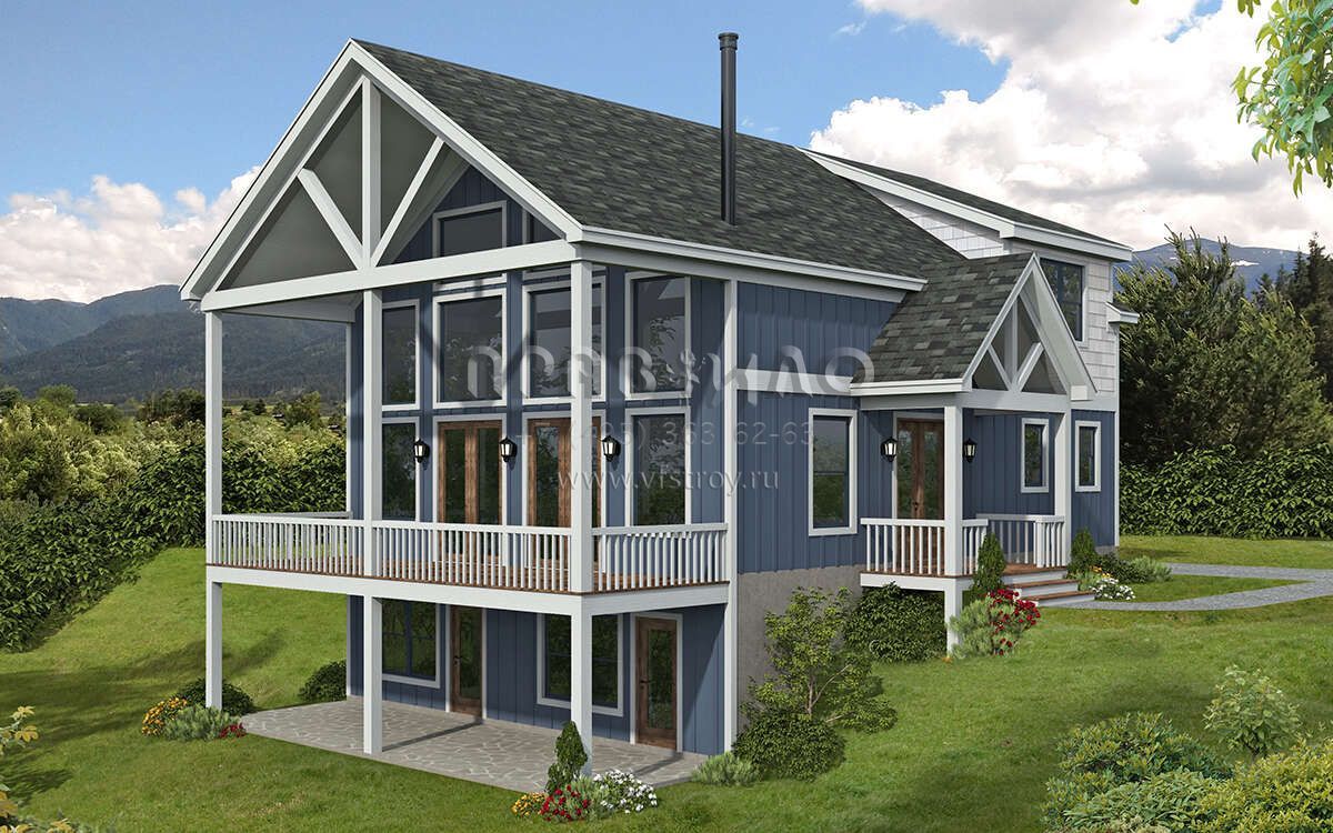 Проект двухэтажного дома без гаража в стиле Шале S5-170 (940-00781)