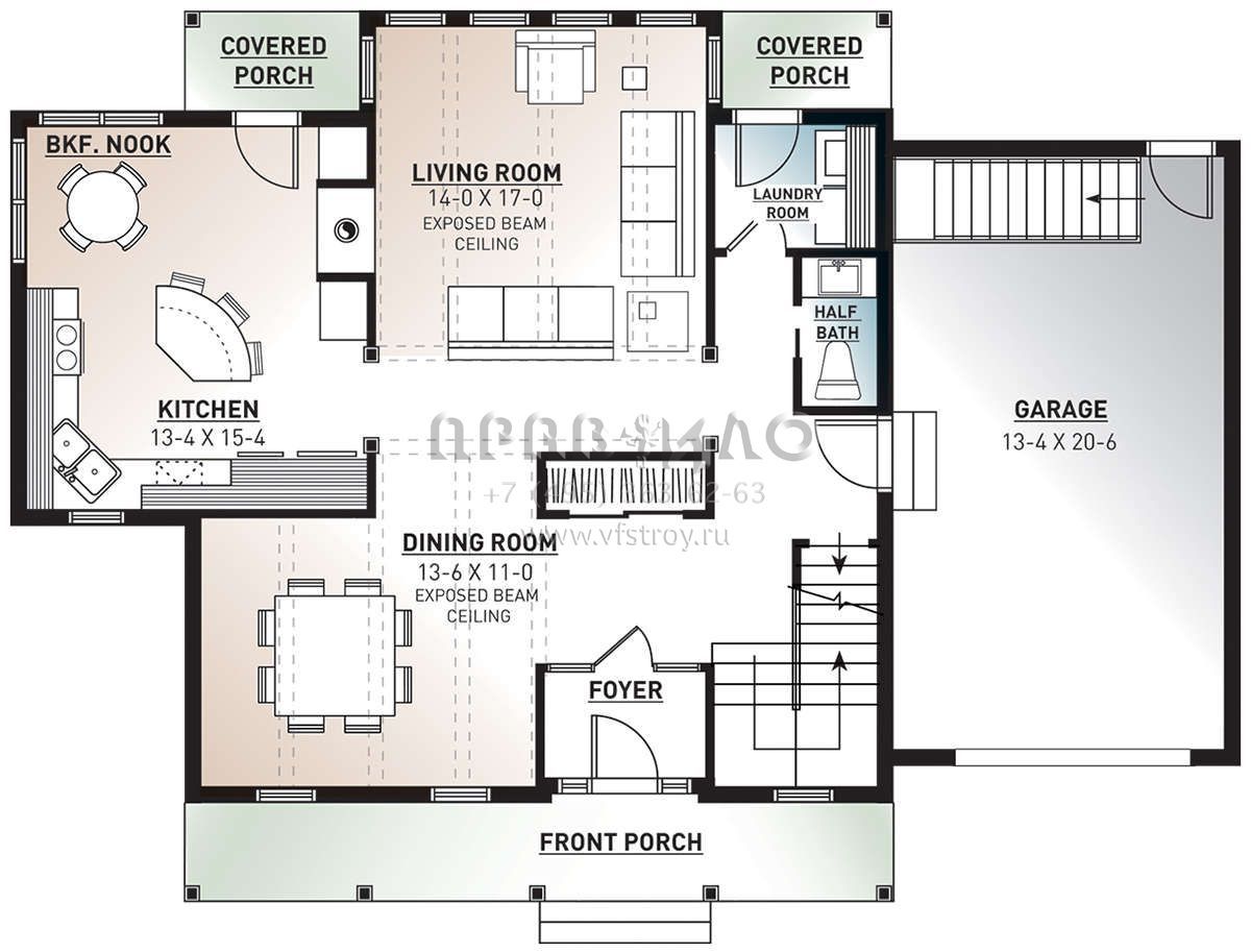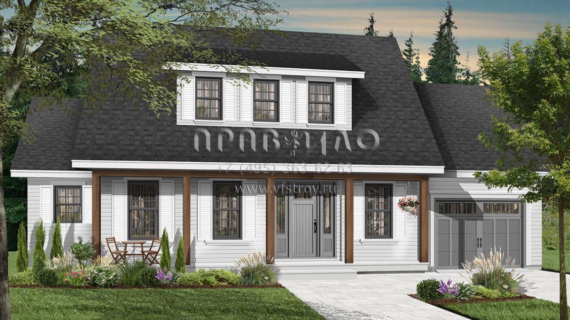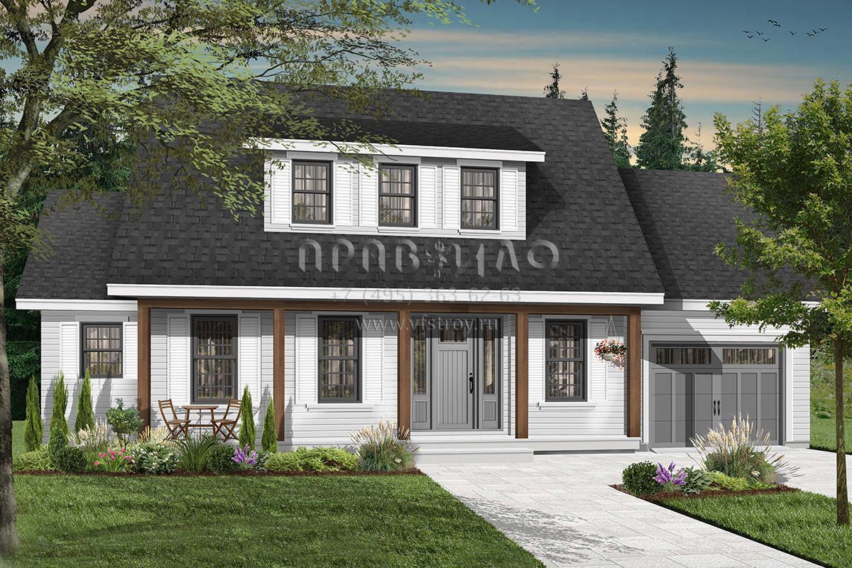 Проект двухэтажного дома с гаражом на одну машину в стиле Ранчо S5-171 (034-00414)