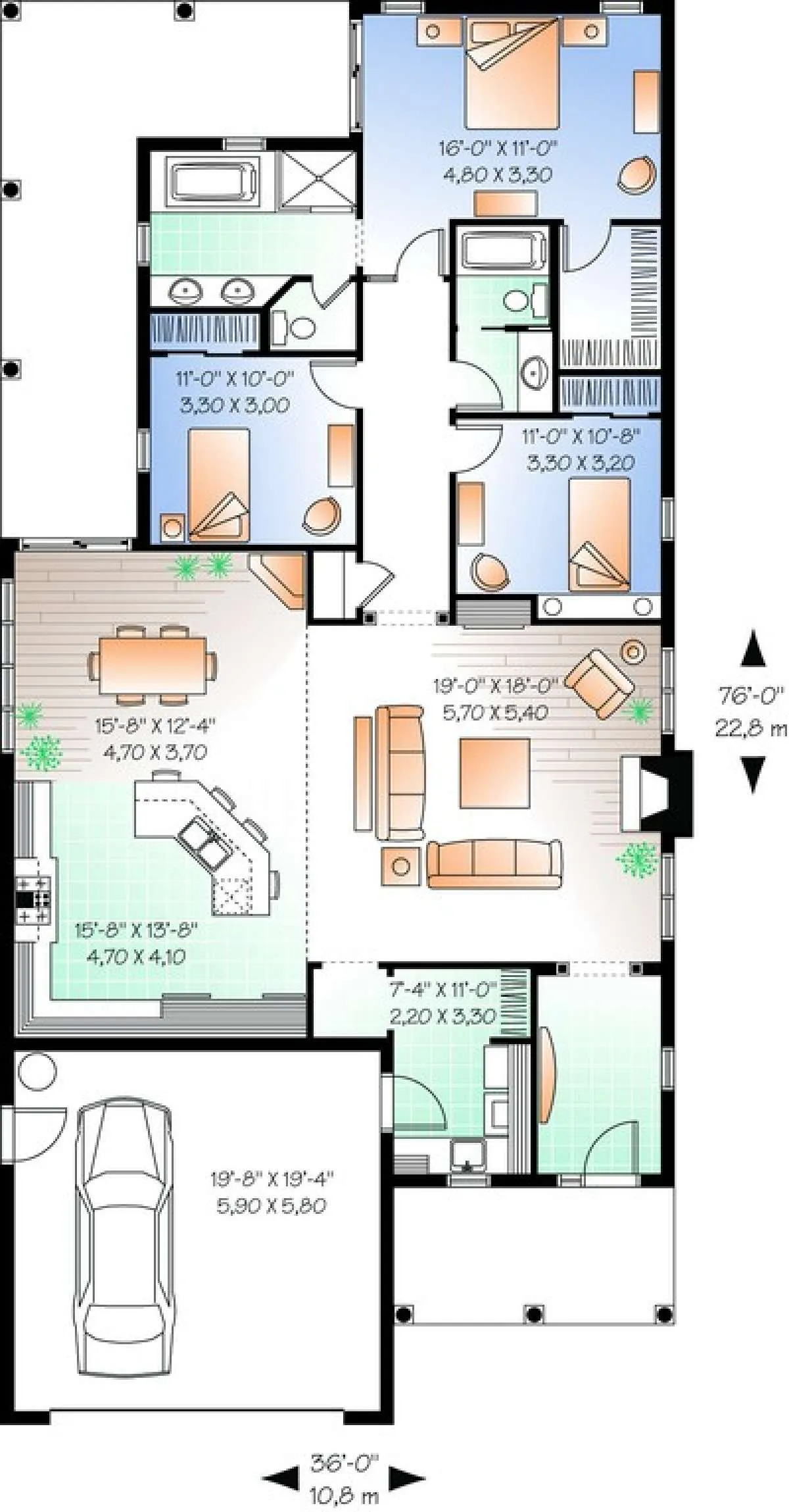 Проект одноэтажного дома с гаражом на две машины в современном стиле S5-171 (034-00671)