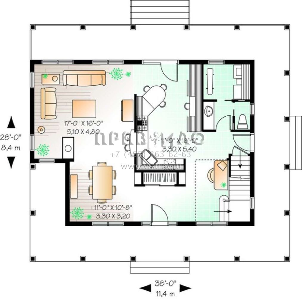 Проект двухэтажного дома без гаража в стиле Ранчо S5-171 (034-00771)
