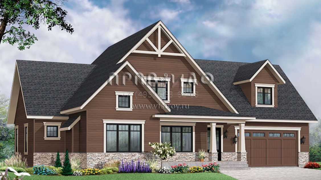 Проект двухэтажного дома с гаражом на две машины в американском стиле S5-171 (034-01100)