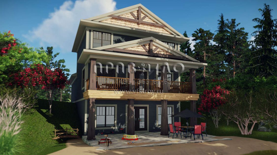 Проект двухэтажного дома с гаражом на две машины в стиле Ранчо S5-171 (1020-00328)