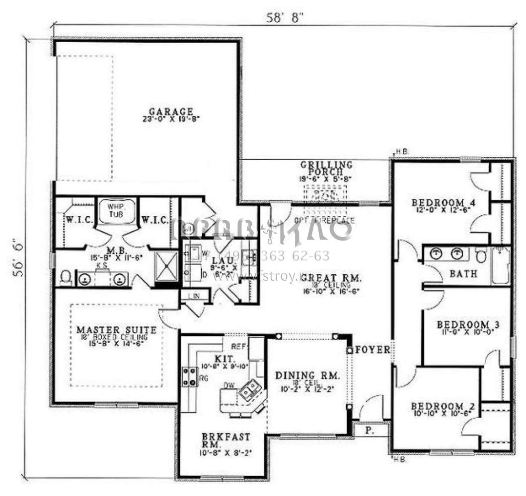 Проект одноэтажного дома с гаражом на две машины в стиле Ранчо S5-171 (110-00368)