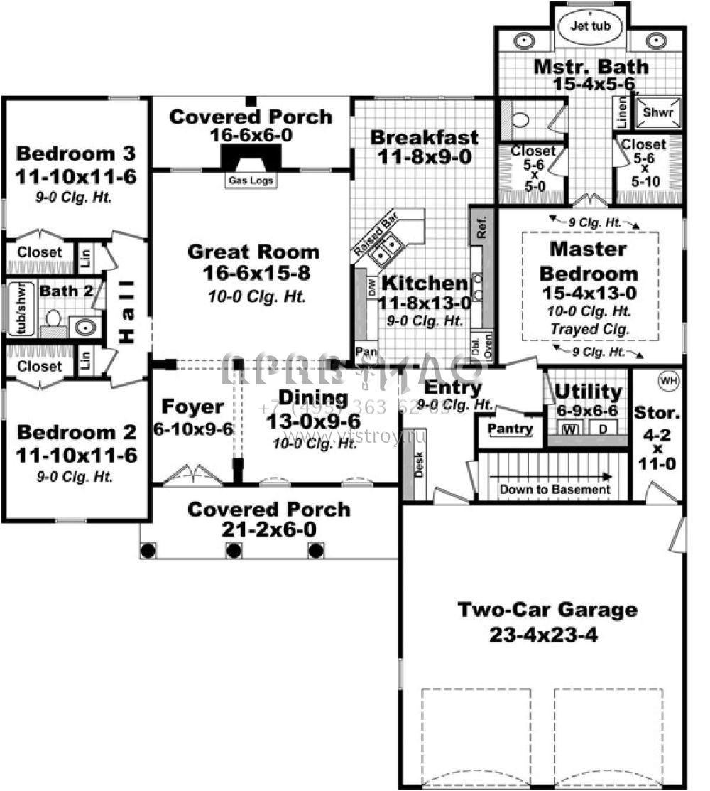 Проект одноэтажного дома с гаражом на две машины в стиле Ранчо S5-171 (348-00235)