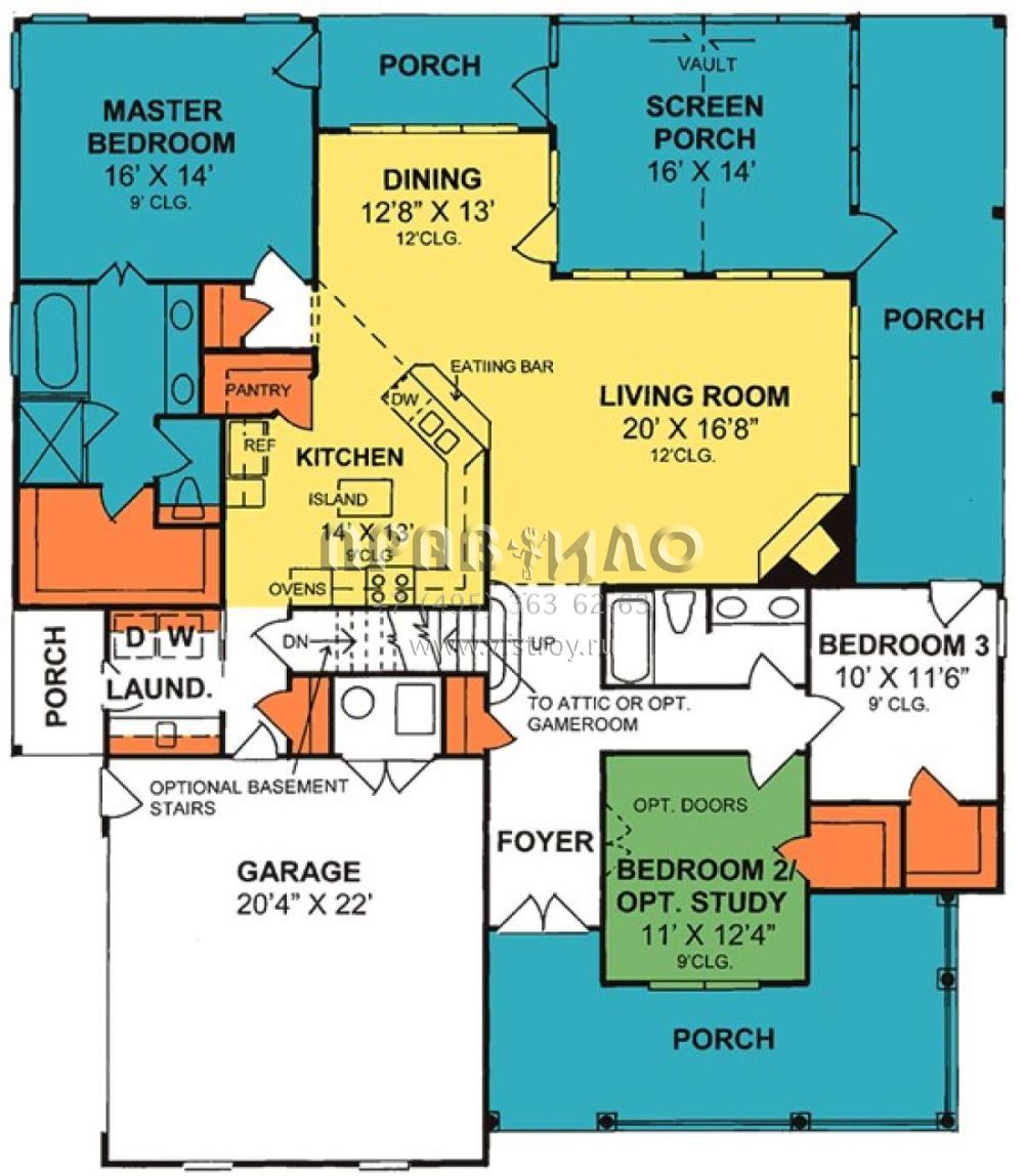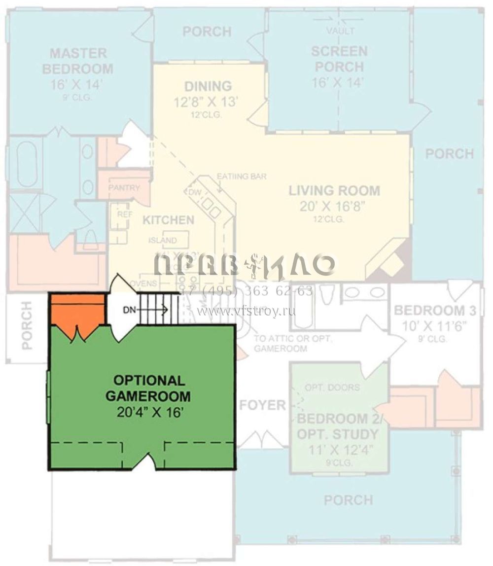 Поскольку этот проект разрабатывался иностранными архитекторами, для строительства дома требуется переработка проекта под действующие в России нормы. Данные визуализации проекта представлены для ознакомления с концепцией проекта. Проект разработан американским архитектурным бюро и представлен America's Best House Plans.