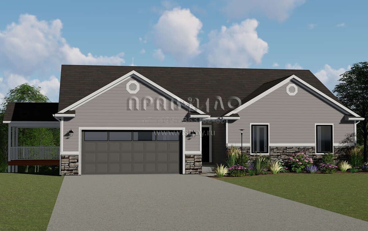 Проект одноэтажного дома с гаражом на две машины в стиле Ранчо S5-171 (5032-00036)