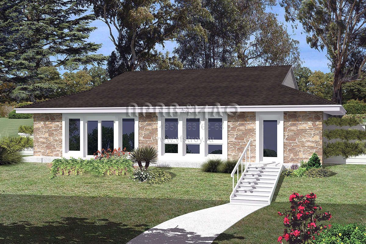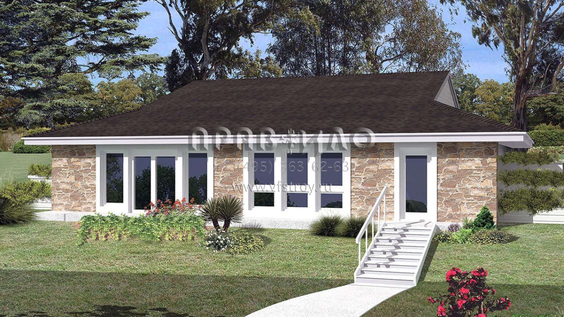 Большая площадь участка позволяет выбрать одноэтажный проект дома, особенно если в семье есть пожилые люди, инвалиды или маленькие дети.