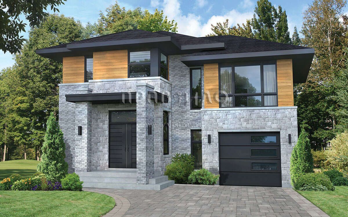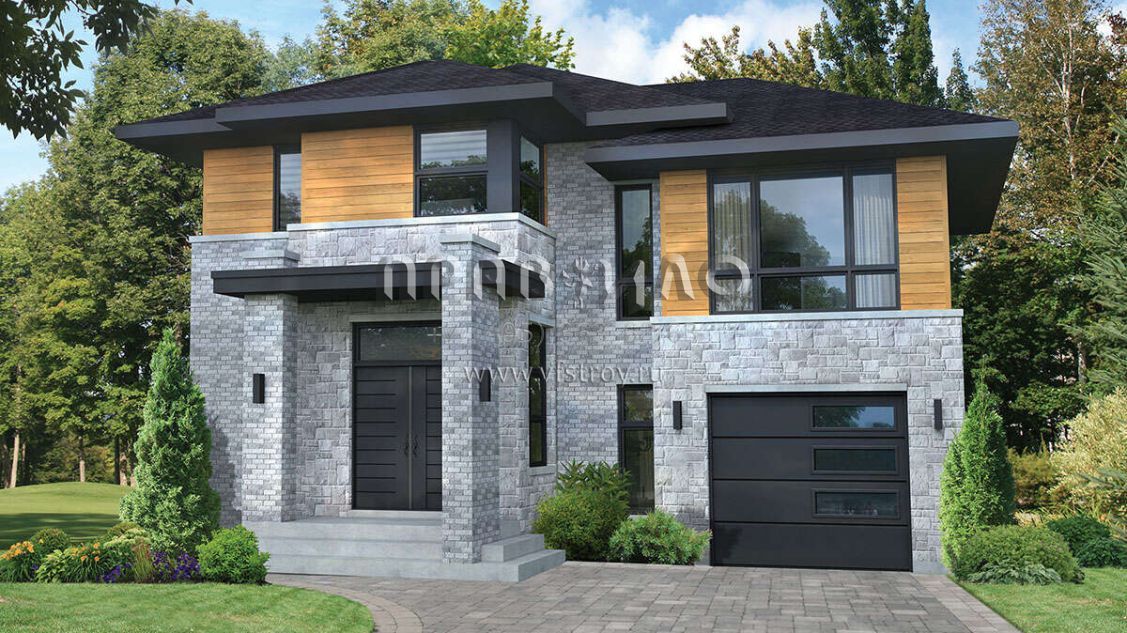 Проект двухэтажного дома с гаражом на одну машину в современном стиле S5-171 (6146-00603)