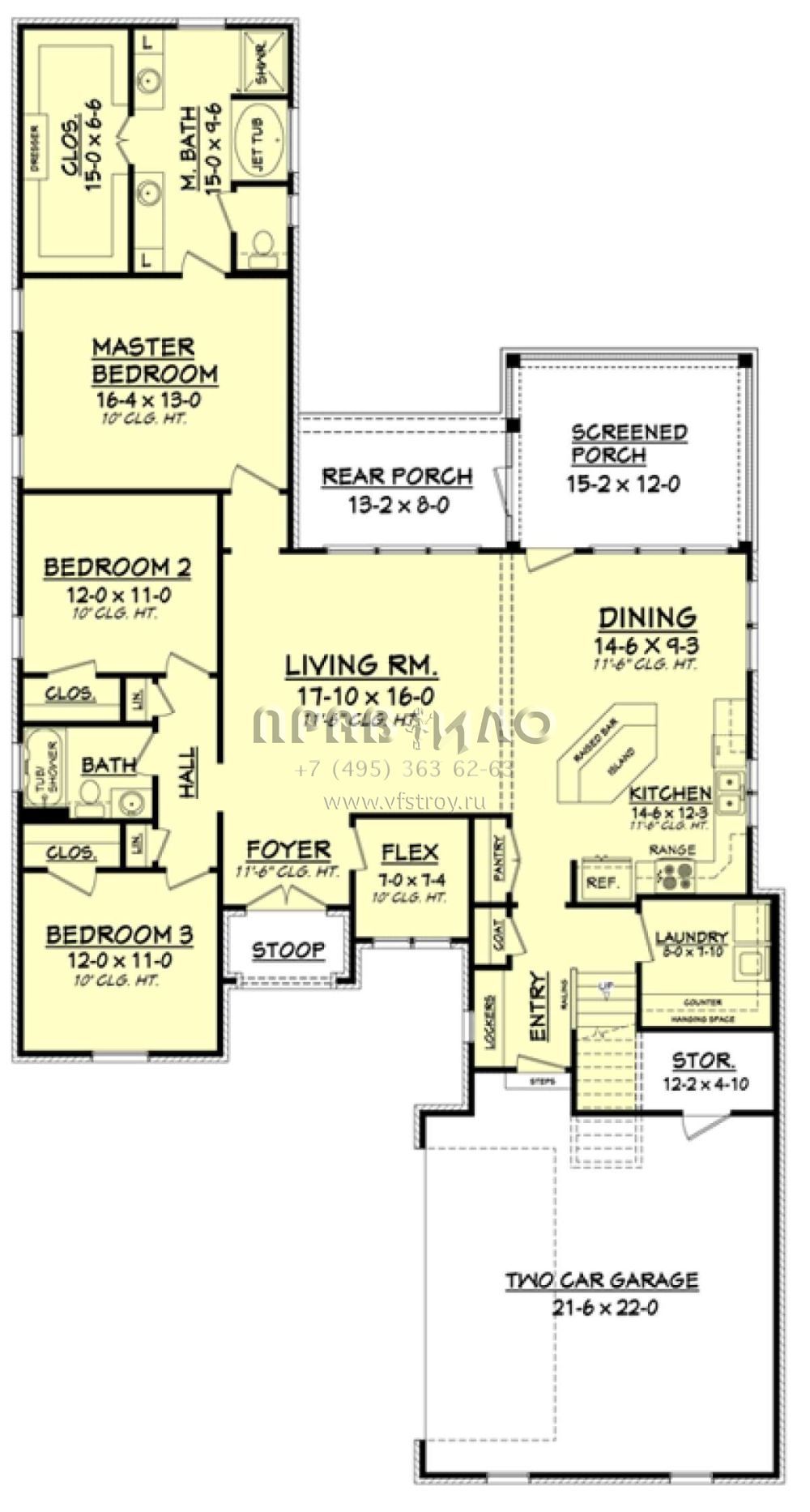 Поскольку этот проект разрабатывался иностранными архитекторами, для строительства дома требуется переработка проекта под действующие в России нормы. Данные визуализации проекта представлены для ознакомления с концепцией проекта. Проект разработан американским архитектурным бюро и представлен America's Best House Plans.
