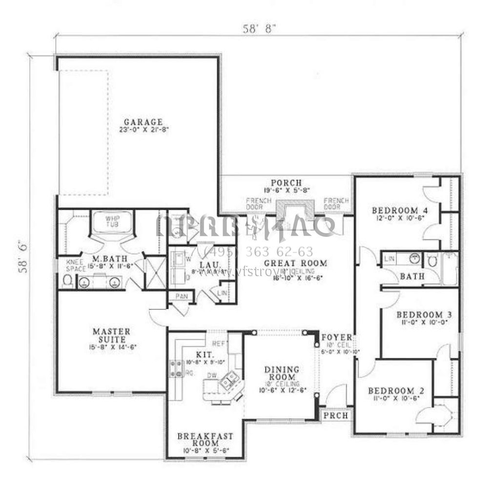 Проект одноэтажного дома с гаражом на две машины в стиле Ранчо S5-172 (110-00261)