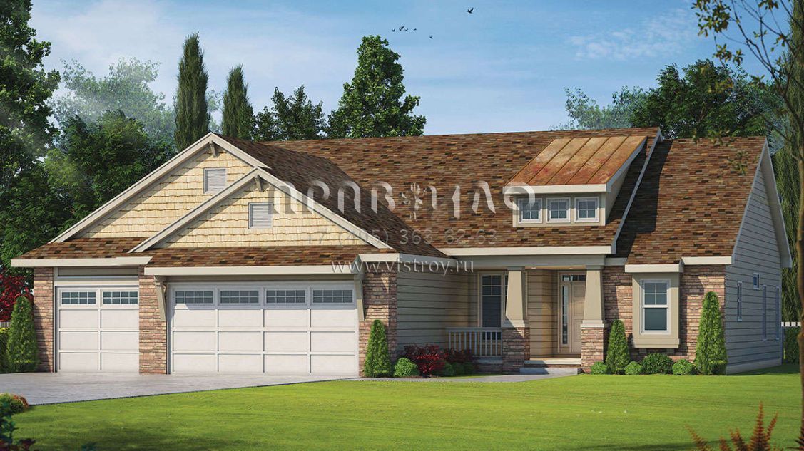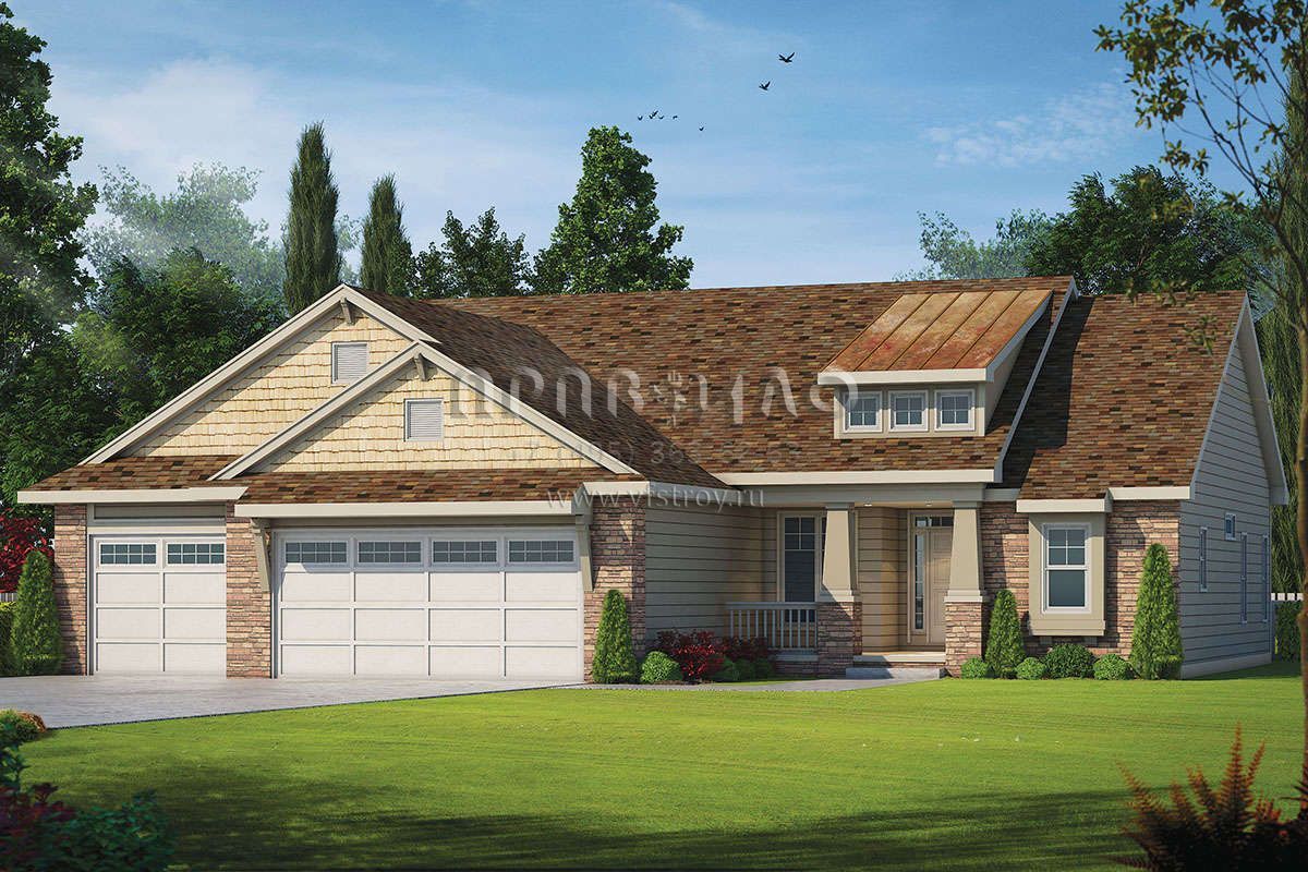 Проект одноэтажного дома с гаражом на три и более машин в американском стиле S5-172 (402-01483)