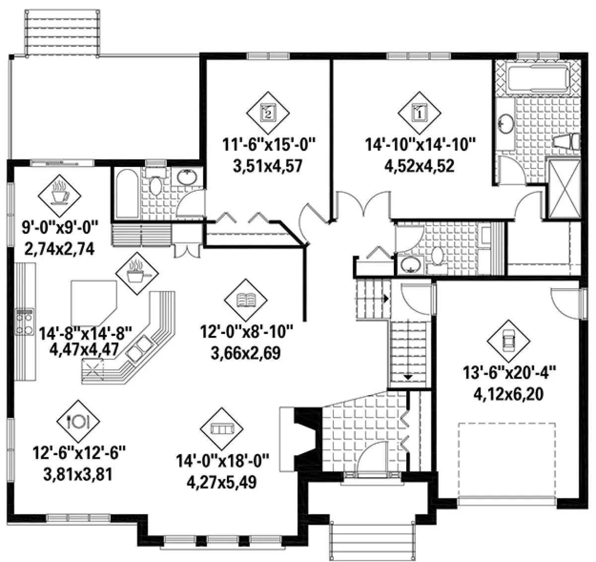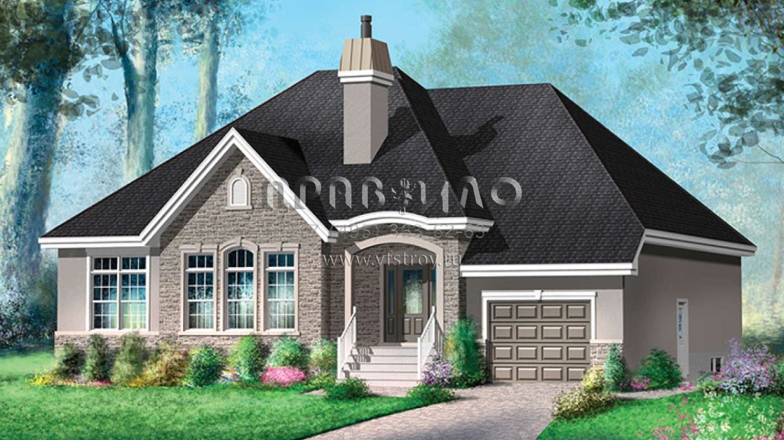 Проект одноэтажного дома с гаражом на одну машину в английском стиле S5-172 (6146-00307)