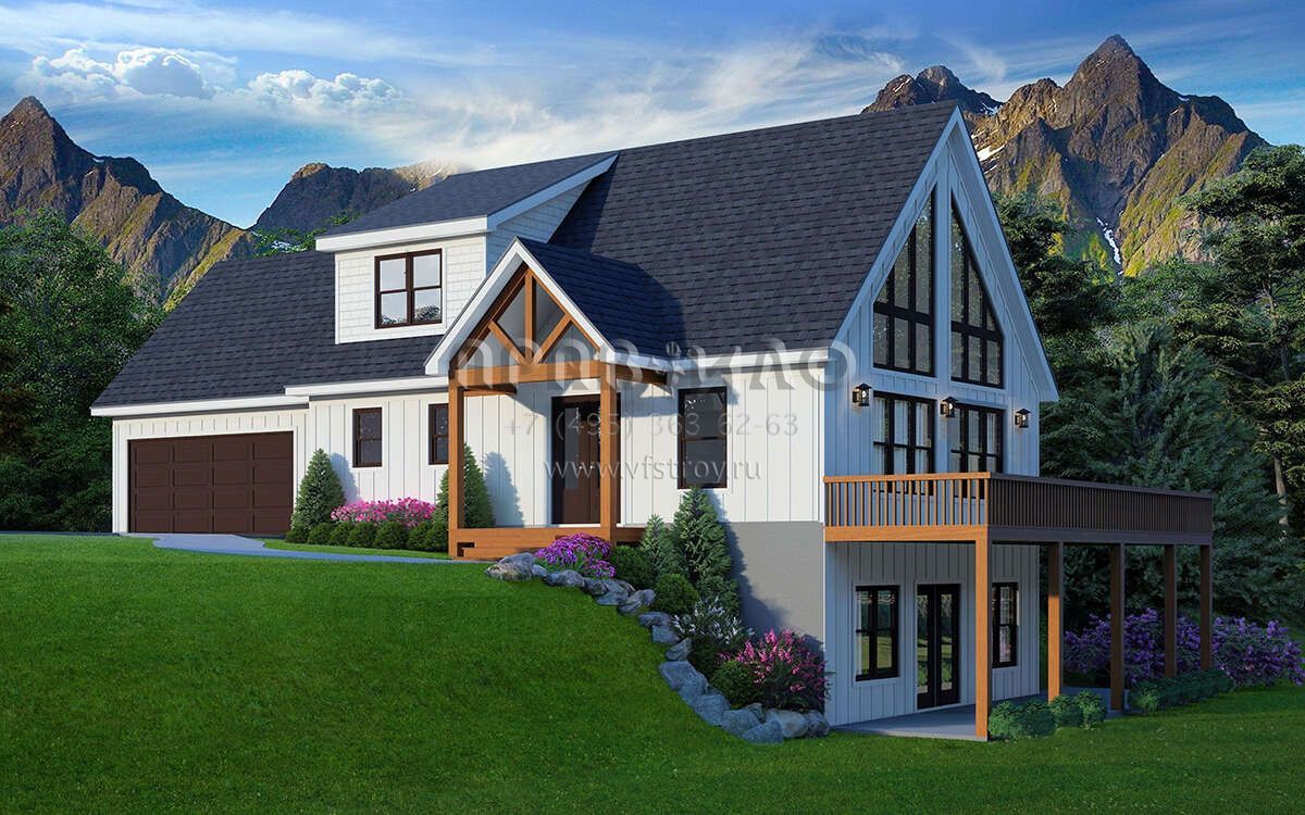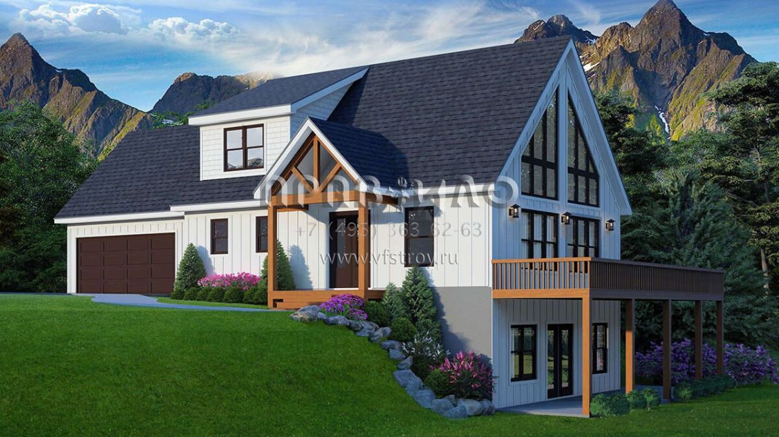 Проект двухэтажного дома с гаражом на две машины в стиле Шале S5-172 (940-00743)