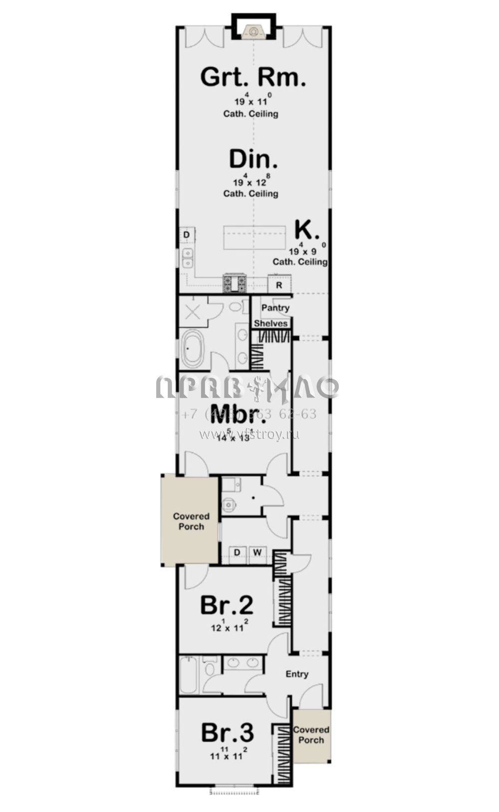 Проект одноэтажного дома без гаража в стиле Ранчо S5-172 (963-00457)