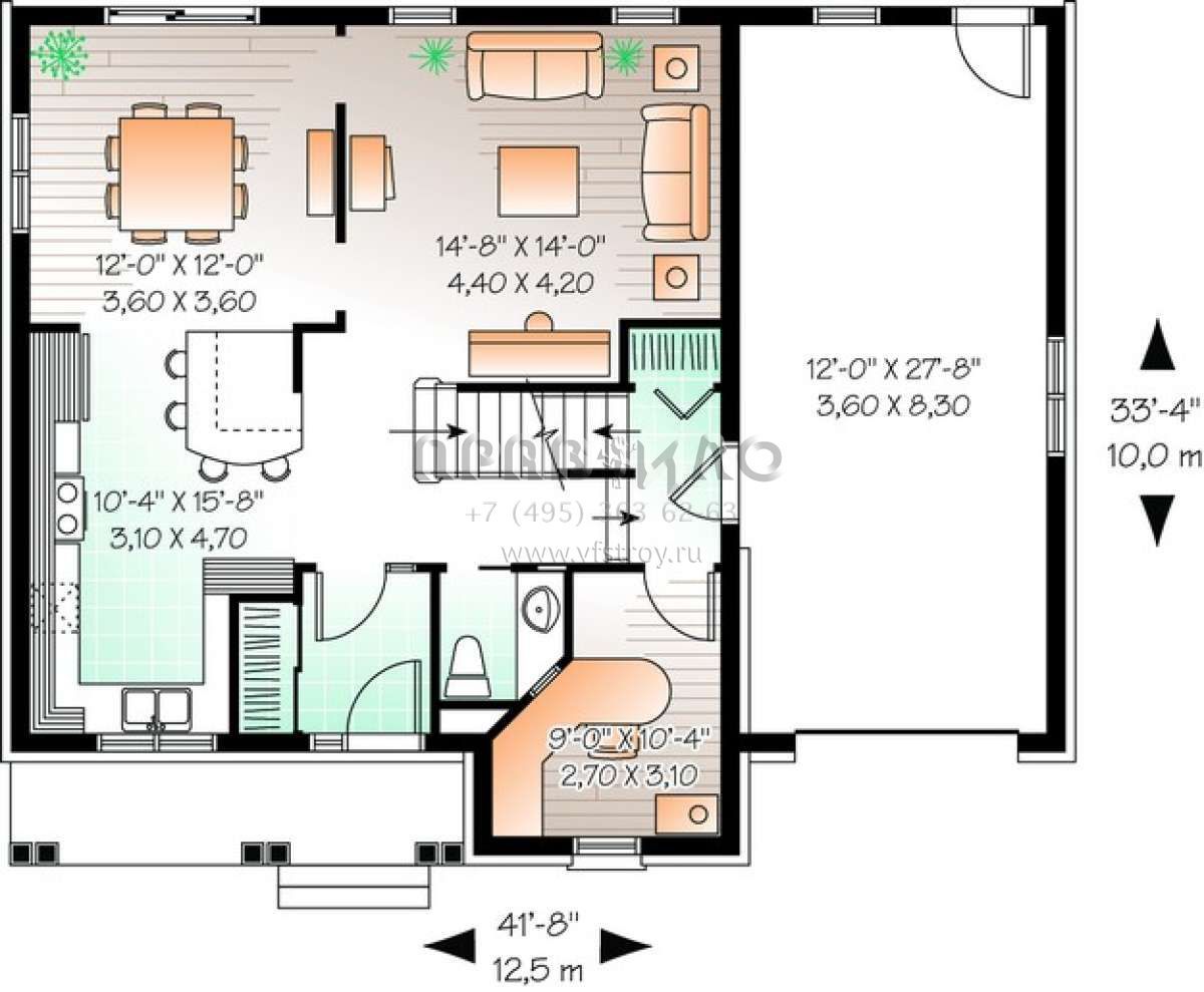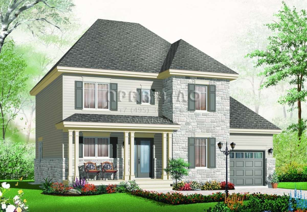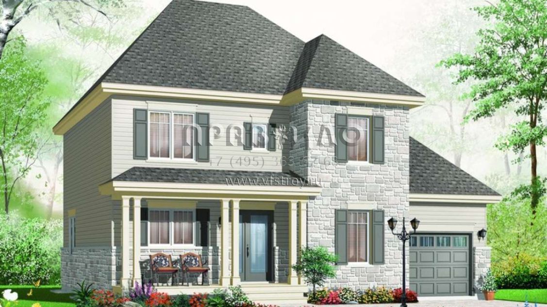 Проект двухэтажного дома с гаражом на одну машину в стиле Ранчо S5-173 (034-00859)