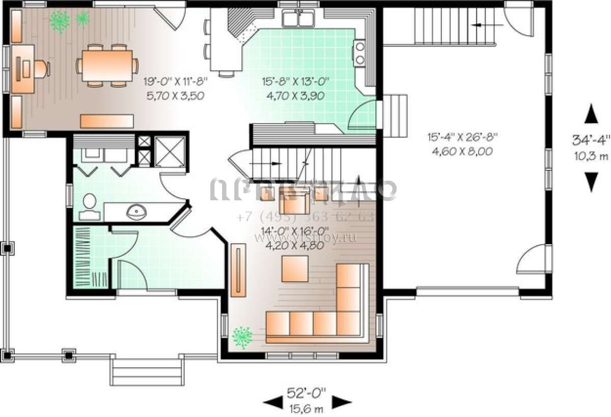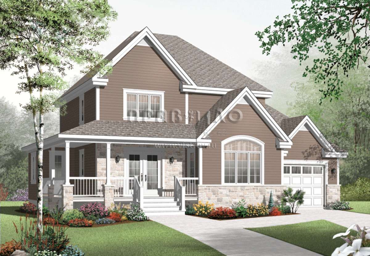 Проект двухэтажного дома с гаражом на одну машину в стиле Ранчо S5-173 (034-01027)