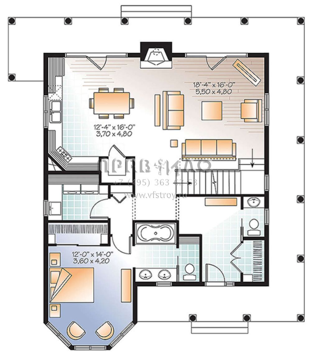Проект двухэтажного дома без гаража в стиле Ранчо S5-173 (034-01099)