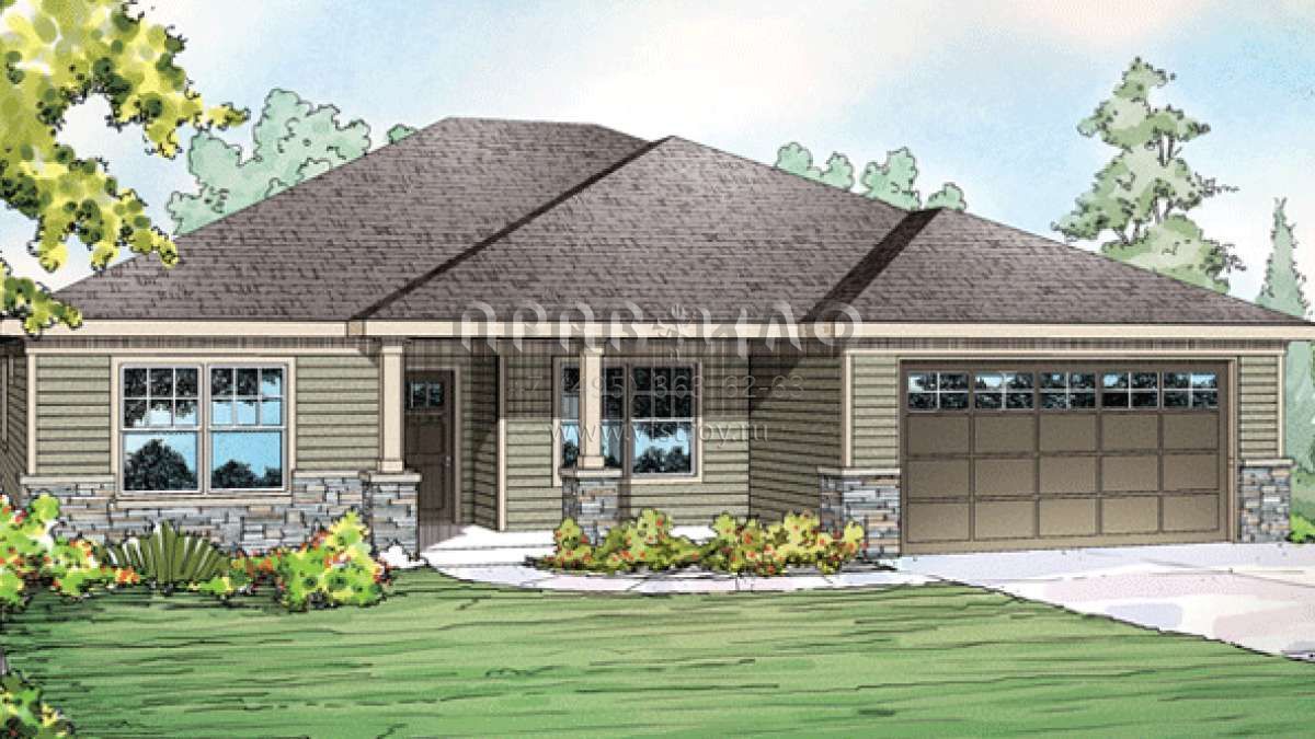 Проект одноэтажного дома с гаражом на две машины в стиле Ранчо S5-173 (035-00610)