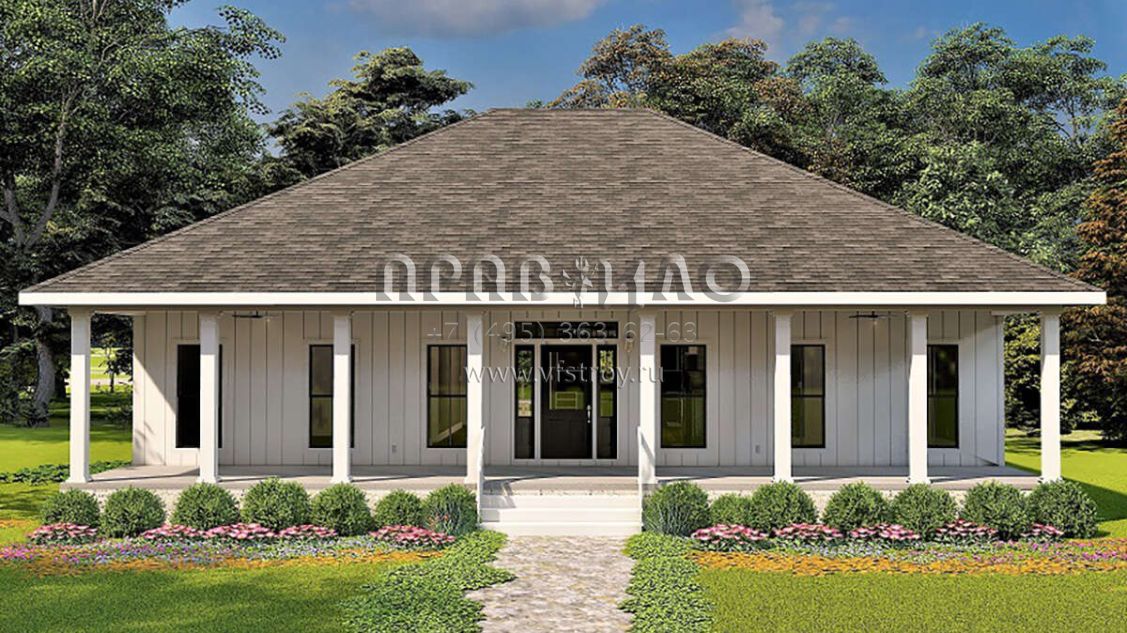 Большая площадь участка позволяет выбрать одноэтажный проект дома, особенно если в семье есть пожилые люди, инвалиды или маленькие дети.