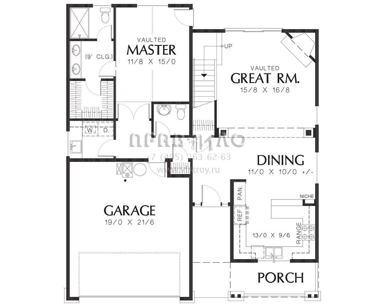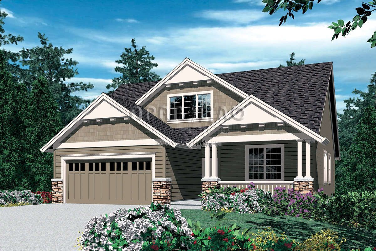 Проект двухэтажного дома с гаражом на две машины в стиле Ранчо S5-173 (2559-00272)