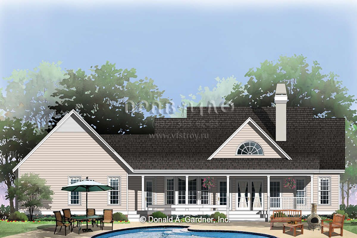 Поскольку этот проект разрабатывался иностранными архитекторами, для строительства дома требуется переработка проекта под действующие в России нормы. Данные визуализации проекта представлены для ознакомления с концепцией проекта. Проект разработан американским архитектурным бюро и представлен America's Best House Plans.