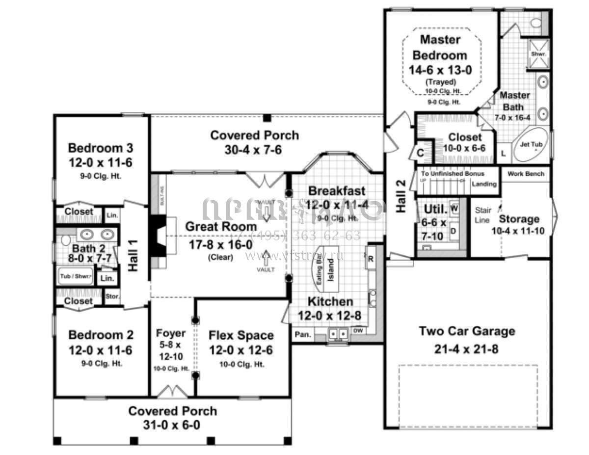Проект одноэтажного дома с гаражом на две машины в стиле Ранчо S5-173 (348-00075)