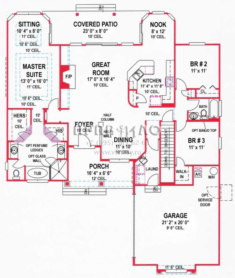 Проект одноэтажного дома с гаражом на две машины в стиле Ранчо S5-173 (4766-00139)