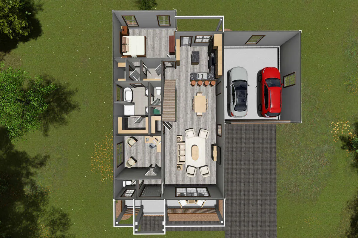Поскольку этот проект разрабатывался иностранными архитекторами, для строительства дома требуется переработка проекта под действующие в России нормы. Данные визуализации проекта представлены для ознакомления с концепцией проекта. Проект разработан американским архитектурным бюро и представлен America's Best House Plans.