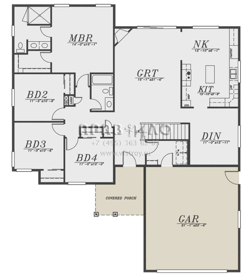 Проект одноэтажного дома с гаражом на две машины в стиле Ранчо S5-173 (5244-00018)
