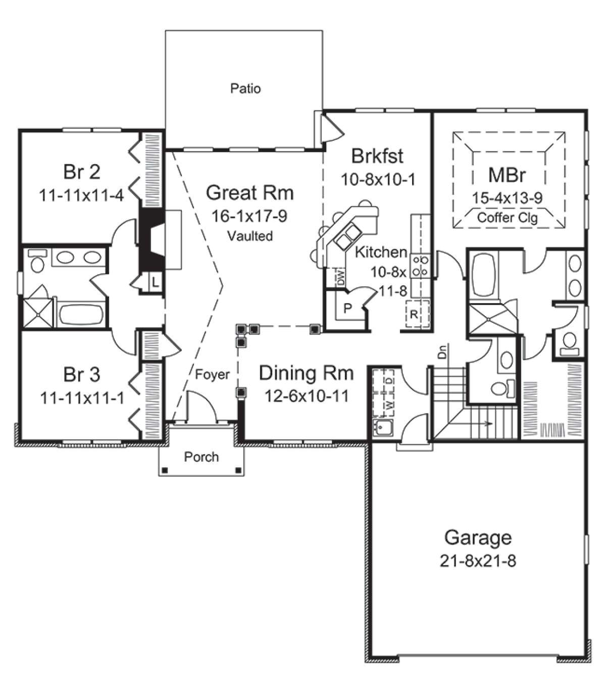Проект одноэтажного дома с гаражом на две машины в стиле Ранчо S5-173 (5633-00279)