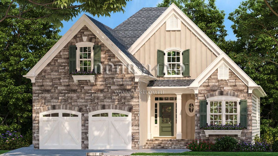 Проект двухэтажного дома с гаражом на две машины в стиле Ранчо S5-173 (8594-00139)