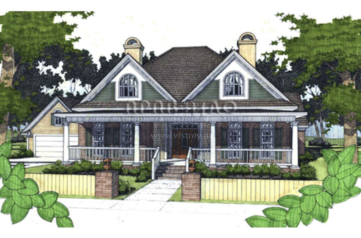 Проект двухэтажного дома с гаражом на две машины в стиле Ранчо S5-173 (9401-00044)