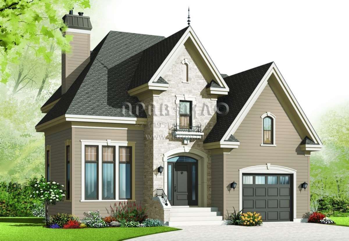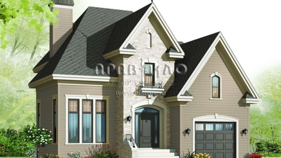 Проект одноэтажного дома с гаражом на одну машину в английском стиле S5-174 (034-00984)